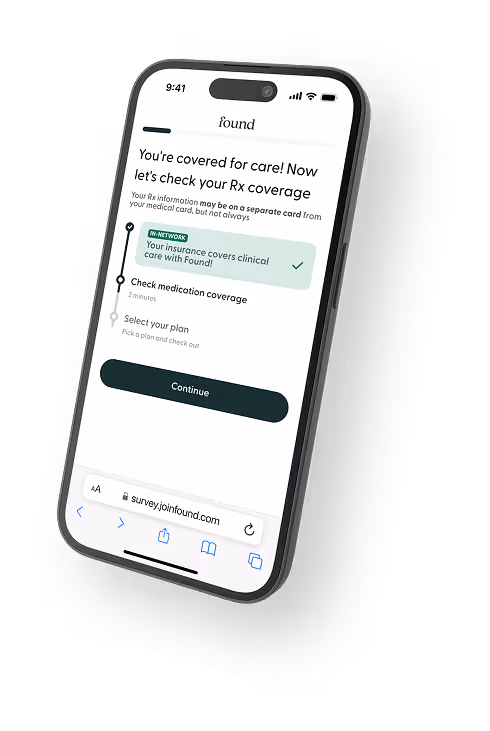 IMPORTANT | *Certain medications are FDA-approved for conditions other than weight. Found is not affiliated with or endorsed by Novo Nordisk A/S., the owner of the registered trademark Ozempic® and Eli Lilly & Co., the owner of the registered trademarks Zepbound®. Insurance coverage, pricing & terms vary. Compounded GLP-1s are not FDA- approved or evaluated for safety or efficacy, and not available in all states. Rx is subject to provider review and clinical eligibility. Advertised pricing for branded GLP-1s via insurance w/ 12 month commitment. Advertised pricing for non-GLP-1s w/ 12 month commitment. Copays, coinsurance & deductibles may apply. Imagery for illustrative purposes only. See risk info here and offer terms here.